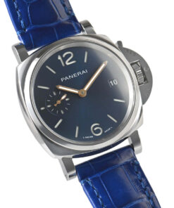 The Panerai Luminor Due PAM01273 blends iconic design with refined elegance. Its 38mm stainless steel case houses a radiant blue sunburst dial, complemented by luminous markers and a shiny blue alligator strap. Powered by the self-winding P.900 calibre, it offers a 3-day power reserve and 50 meters of water resistance. Slim, sophisticated, and versatile, it’s a perfect choice for those seeking timeless style in a more compact silhouette.