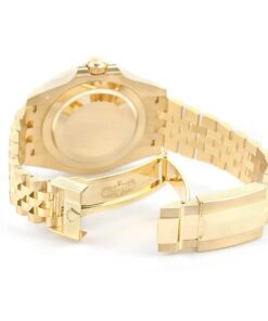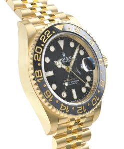 The Rolex GMT-Master II 126718GRNR-0001 blends iconic travel heritage with luxurious sophistication. Crafted in 18k yellow gold, it features a black and grey Cerachrom bezel, black dial, and Chromalight-filled markers. Powered by the Calibre 3285 automatic movement with a 70-hour power reserve, it offers dual time zone tracking and 100 meters of water resistance. Paired with a Jubilee bracelet, it’s a symbol of prestige and global adventure.