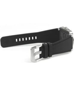 Encased in 41mm of black stainless steel, the watch features a stark, black dial for optimal contrast. White, luminescent hour markers and hands ensure exceptional readability day or night. A practical date window is discreetly positioned between 4 and 5 o’clock. The black rubber strap provides a secure and comfortable fit, making it ideal for active use and complementing the timepiece’s utilitarian, stealthy aesthetic.