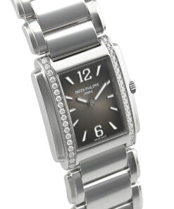 The Patek Philippe Twenty~4 4910/1200A-010 in stainless steel is defined by its bezel set with 36 brilliant-cut diamonds. Powered by a quartz movement, this elegant timepiece is the ultimate expression of modern, feminine luxury for the discerning woman’s daily life.