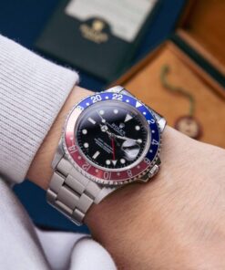 The Rolex GMT-Master 16700 in stainless steel features the iconic red and blue “Pepsi” bezel, a self-winding Caliber 3175, and 24-hour functionality. A symbol of aviation heritage and refined travel, it embodies prestige, reliability, and timeless sophistication for discerning collectors worldwide.