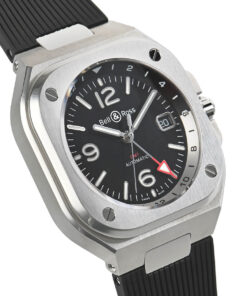 Completing the timepiece is a comfortable black rubber strap, fitted with a satin-polished folding clasp for security and ease. The BR 05 GMT Black masterfully blends urban sophistication with practical features, embodying the adventurous spirit of Bell & Ross. With its refined details and commanding presence, this is a powerful companion for those who move confidently between time zones and worlds.