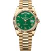 Its brown gradient dial draws the eye with a rich, horizontally embossed pattern. The warm 18k rose gold case and matching bracelet create a seamless, luxurious flow. Applied hour markers and hands, also in rose gold, feature luminescent coating for easy readability. The polished and satin-brushed surfaces enhance depth and texture. A discreet date window rests at three o’clock, balancing function with understated beauty. Every element is finished with exceptional precision and attention to detail.