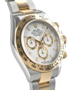 Exquisitely crafted, the watch features a striking white dial with champagne-rimmed sub-dials that evoke timeless elegance. The yellow gold bezel, engraved with a tachymeter scale, reinforces its racing heritage while enhancing its distinguished profile. Chromalight-filled hour markers and hands ensure superior legibility in all lighting conditions. Completing the sophisticated design is the two-tone Oyster bracelet in Oystersteel and yellow gold, offering both durability and polished refinement.
